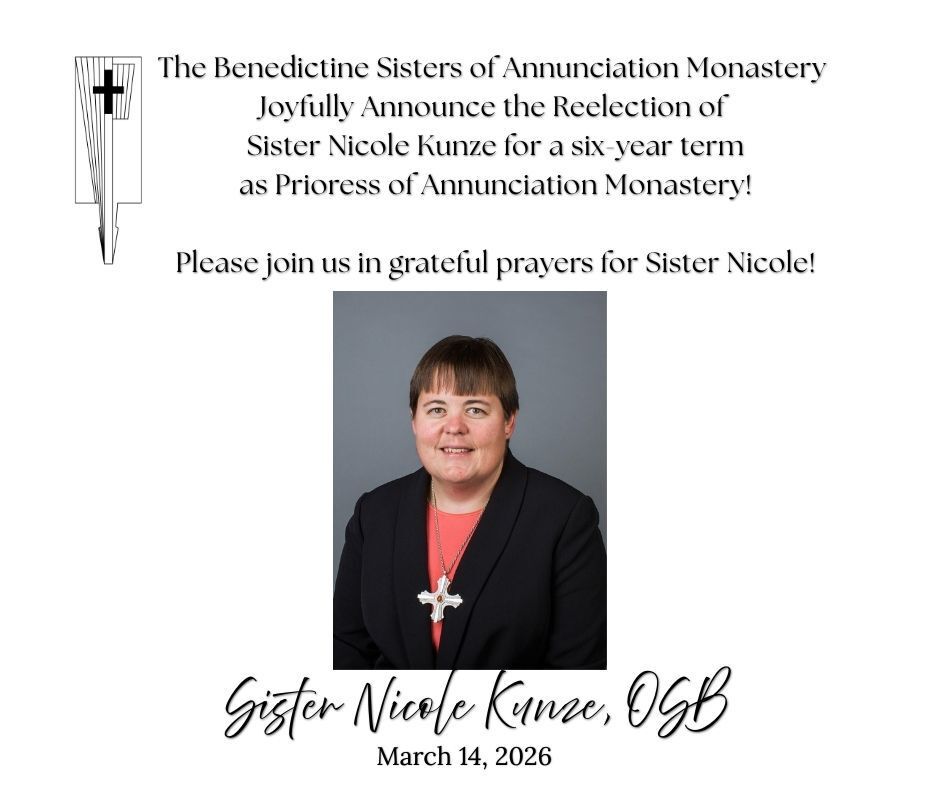 We thank God for our Prioress Sister Nicole Kunze! We look forward to your leadership as we serve God's people now and into the future! God bless you, always!