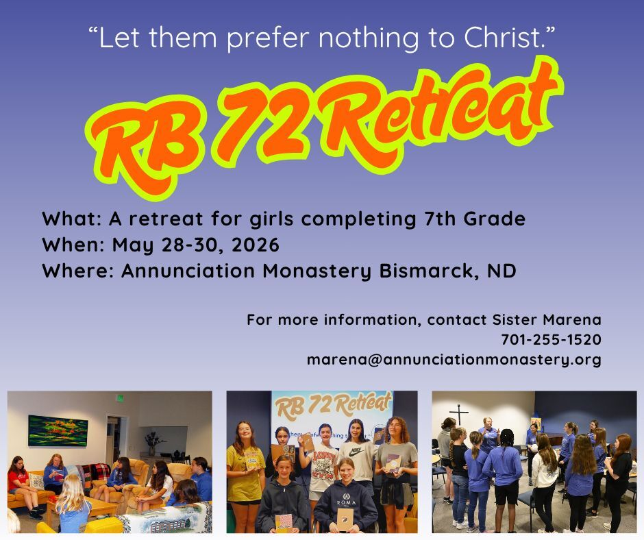 A unique opportunity for girls completing 7th Grade to meet the sisters, experience monastic life, participate in faith-based activities, and meet new friends!